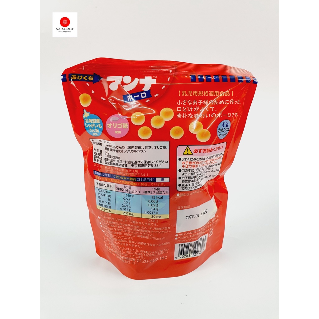 Thông tin sản phẩm: - Thương hiệu: Morinaga - Xuất xứ: Nhật Bản - Quy cách: 10 gói/ túi - Trọng lượng: 34g Bánh ăn dặm là bữa phụ vô cùng yêu thích của các bạn nhỏ. Nếu mẹ khéo tay và có nhiều thời gian có thể trổ tài nướng bánh cho bé, nếu không mẹ hãy ib Natsumi JP để shop giới thiệu các loại bánh phù hợp với độ tuổi của bé nha ^^ - Bánh men bi Morinaga là sản phẩm bánh ăn dặm cho bé từ 07 tháng tuổi trở lên. - Bánh men ăn dặm Morinaga dạng túi là một gói lớn bên trong có 10 gói nhỏ chưa những viên bánh men nhỏ nhỏ. - Khi ăn tan ngay trong miệng, rất thơm ngon. Bánh ăn dặm của Nhật Morinaga là một loại bánh ăn dặm cho bé rất được các bậc phụ huynh ưa chuộng vì thành phần tốt cho sức khỏe, không gây hại cho bé. - Thành phần: tinh bột khoai tây, đường, oligosaccharide, lòng đỏ trứng (kể cả trứng)/vỏ chứa canxi 👉 Dinh dưỡng của bánh bi men Morinaga trong 01 gói nhỏ: - Năng lượng 14 kcal; - Protein 0,06 g; - Lipid 0,1 g; - Carbohydrate 3,3 g; - Natri clorua 0,0012 g; - Canxi: 28 mg.