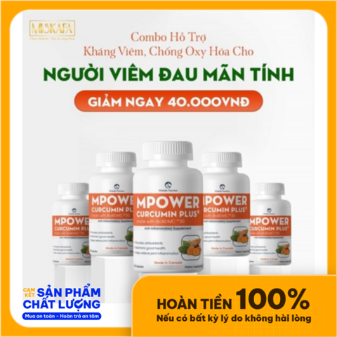 Mpower Curcumin Plus là Viên uống hỗ trợ chống oxy hóa, kháng viêm đau mãn tính toàn thân được ứng dụng công nghệ BioBMDC™30 được cấp bằng sáng chế tại Canada. Nâng cao hàm lượng curcumin BDMC (curcumin mạnh nhất) lên đến 30% gấp gần 60-150 lần curucmin trên thị trường.