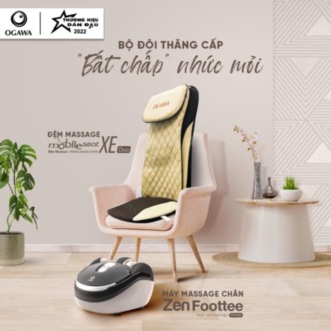 Bộ đôi thăng cấp- Bất chấp nhức mỏi gồm massage chân Zen Footee và đệm Massaeg Mobile Seat Duo. Sau khoảng thời gian chiến đấu với công việc bộn bề đã đến lúc bạn chăm chút lại sức khỏe bản thân và hãy để BỘ ĐÔI này giúp bạn tái tạo lại năng lượng và có " kỳ nghỉ" thực thụ trên 1 chiến "ghế massage thu nhỏ" tại nhà. Chắc chắn bạn sẽ cảm thấy hài lòng!