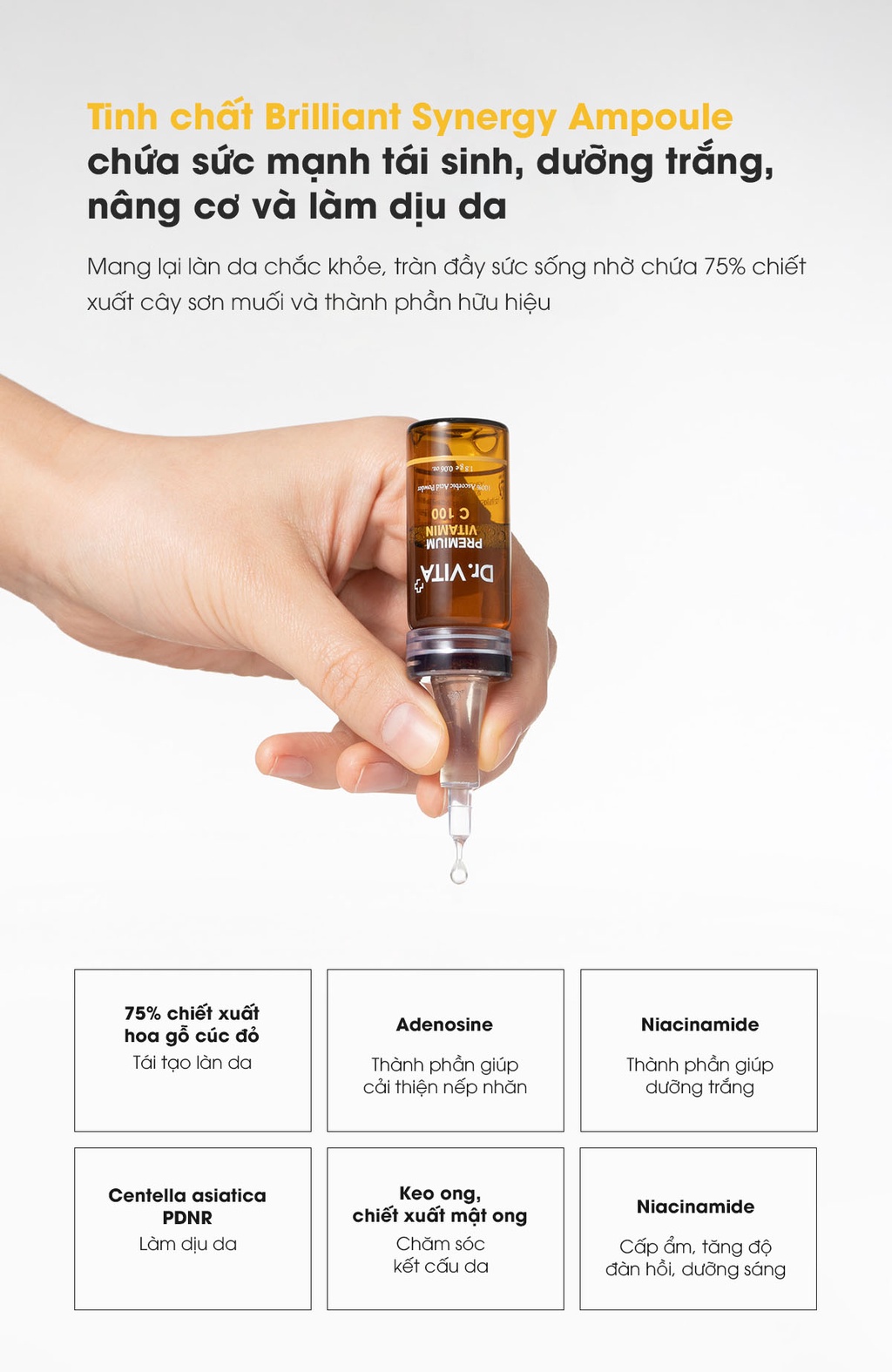 Tinh Chất Vitamin C Dưỡng Trắng Mờ Thâm Nám DR.Vita Hàn Quốc Luiantt Beauty 10ml có thành phần chính gồm: