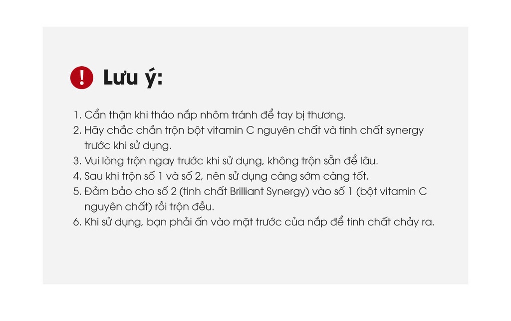 - Đổ lọ tinh chất vào lọ bột C, sau đó lắc đều cho hỗn hợp hòa tan.
