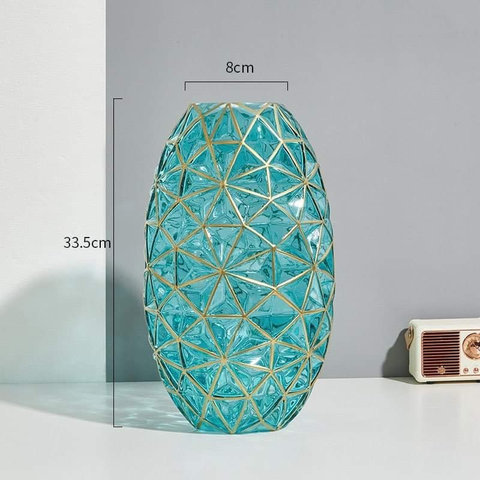 Bình hoa, lọ hoa thủy tinh viền vàng kẻ khối nổi bật, sang trọng , độc đáo