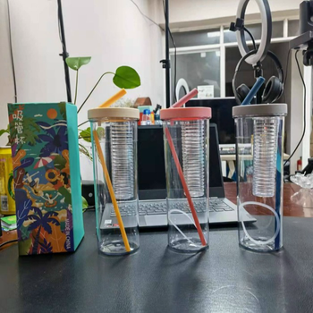 - Bình đựng nước trong suốt có thiết kế độc đáo, bên trong có ống hút hiện đại.