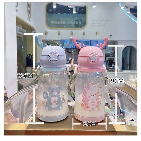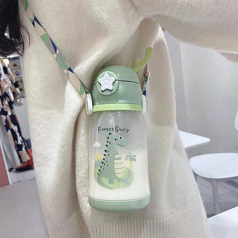 Bình uống nước cho bé được trang bị thêm dây đeo có thể điều chỉnh dài ngắn tiện dụng cho bé mang đi