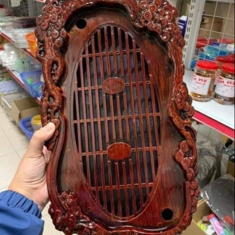 -Không chỉ được dùng trong việc thưởng thức trà. Khay trà kết hợp với bộ ấm chén trở thành một vật dụng trang trí sinh động cho phòng khách của bạn. Khay trà được tích hợp khay nhựa với công dụng hứng nước bên dưới rất tiện lợi.