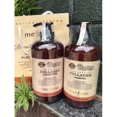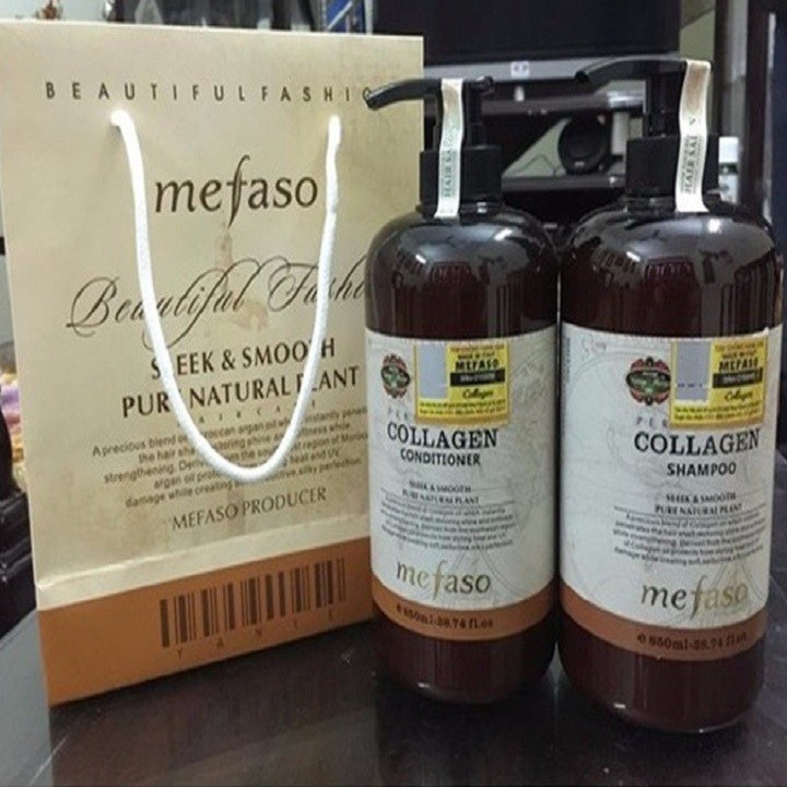 Cặp Gội Xả collagen Mefaso Cao Cấp Chăm Sóc Tóc Phục Hồi Hư Tổn Và Yếu