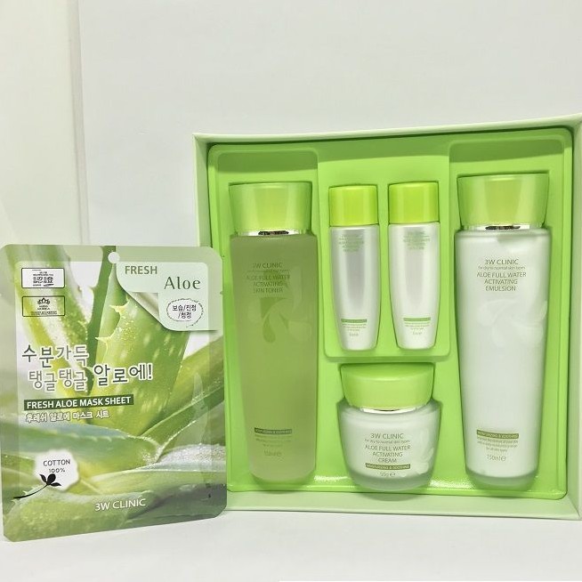 - Sữa dưỡng 3W Clinic Aloe Full Water Activating Emulsion 150ml & 30ml : sữa dưỡng ẩm có tác dụng làm mềm và cân bằng da. Với kết cấu không bết dính, cung cấp độ ẩm và dinh dưỡng cho da, giúp duy trì sự cân bằng và mềm mại cho làn da.
