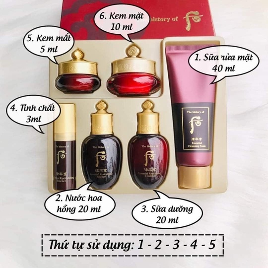 - Trình tự sử dụng:Sữa rửa mặt=> Nước hoa hồng => Tinh chất => Sữa dưỡng => Kem dưỡng.