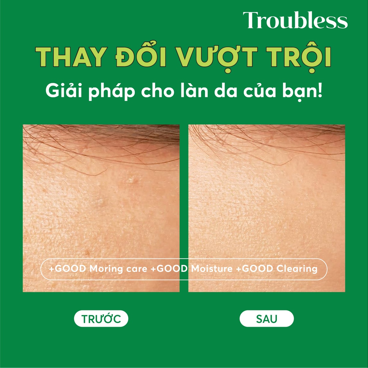 Làm sạch sâu và loại bỏ tế bào chết với sữa rửa mặt TROUBLESS MILD GEL CLEANSER trước,