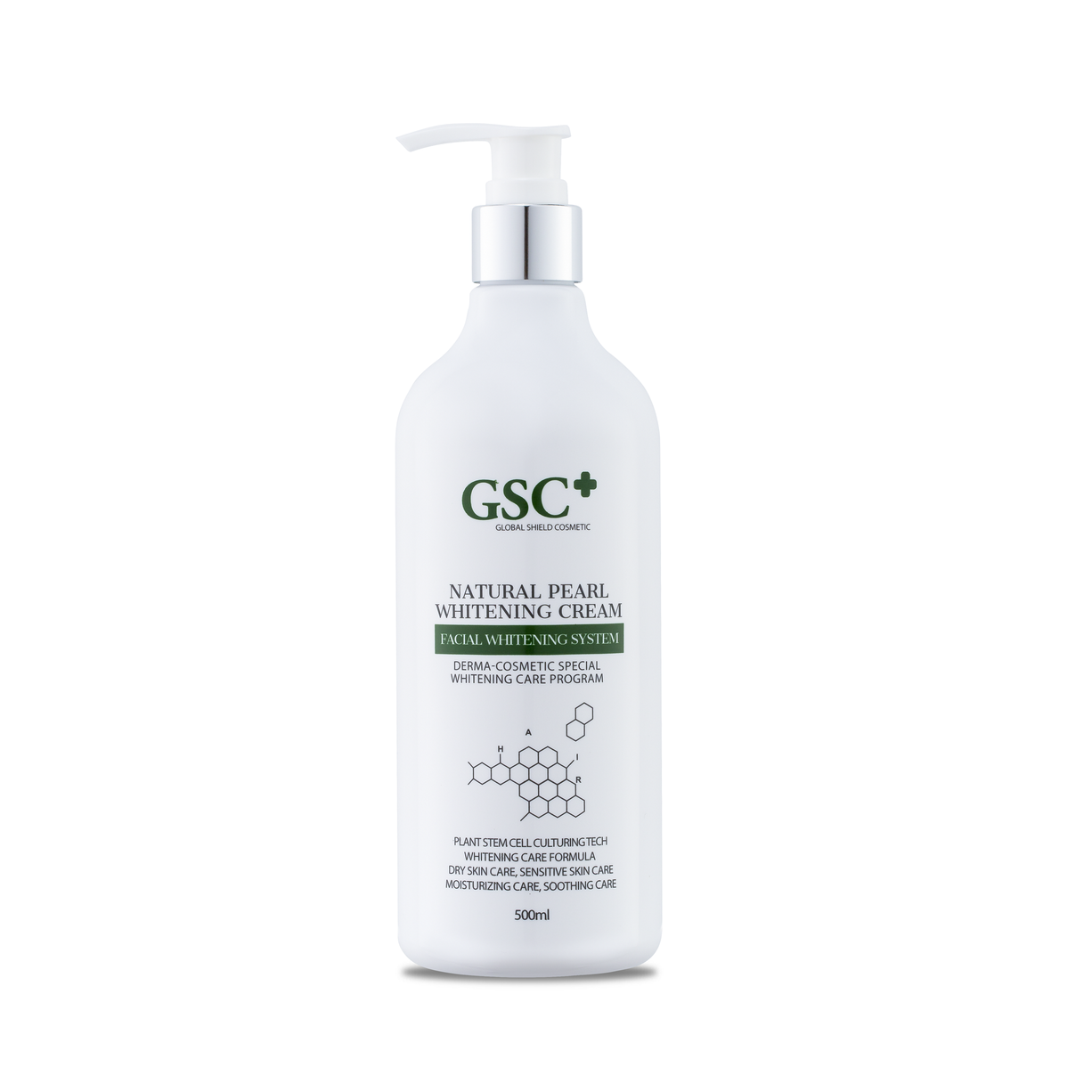 - Kem ủ trắng da mặt Natural Pearl Whitening Cream GSC+ với các thành phần chiết xuất từ bông cải xanh, Arbutin, chiết xuất từ đông trùng hạ thảo, quả mâm xôi đen, giúp khắc phục các tình trạng da bị sắc tố, làm da trắng sáng căng bóng mềm mịn.