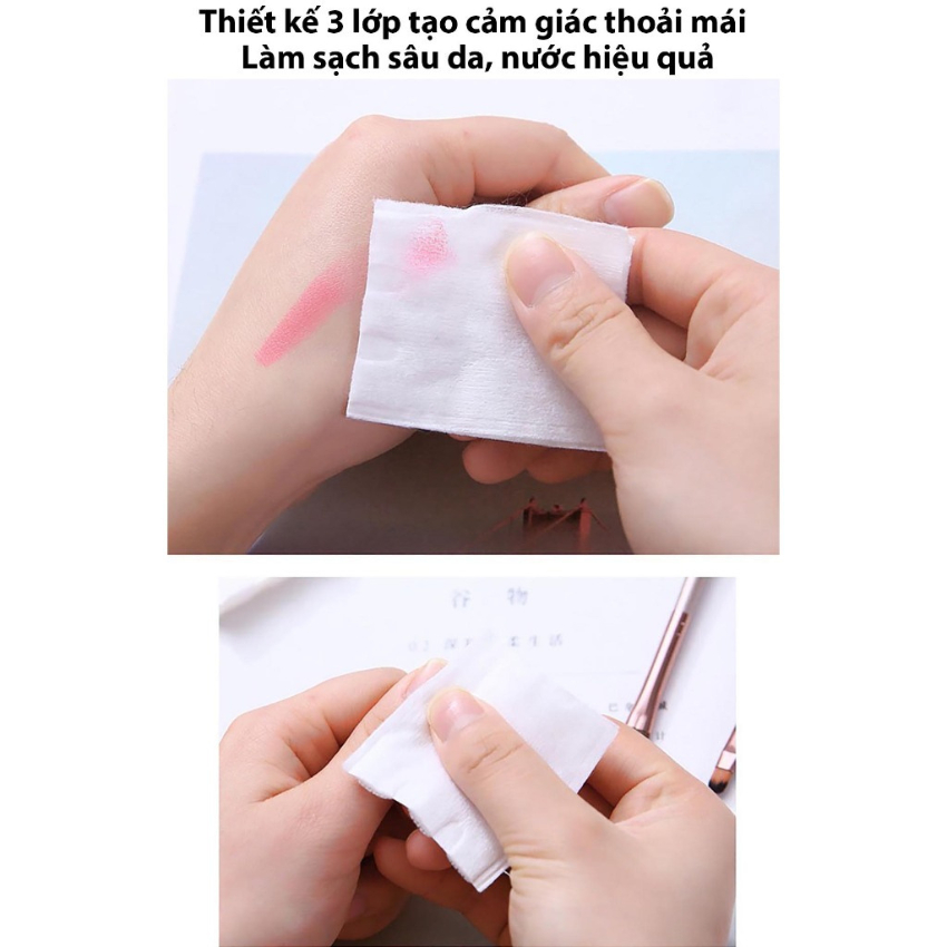 Bông tẩy trang 3 lớp Cotton Pads Túi 222 miếng đóng gói : dạng túi dung tích : 222 miếng ✅ Bông tẩy trang này dùng siêu thích luôn í, dày dặn, ít xơ mà giá lại quá bèo hihi. ✅ 100% bông tự nhiên. ✅ Có túi PP rút siêu tiện lợi và giữ vệ sinh. Miếng bông được viền xung quanh để tránh bị rách, hay xù bông. ✅ Thiết kế với 2 mặt bông vơi 2 công dụng khác nhau: ➕ Một mặt được dùng để lấy lớp trang, bụi bẩn được dễ dàng. ➕ Mặt còn lại được dùng để làm sạch nhẹ nhàng sau khi lớp trang điểm và bụi bẩn đã được lấy đi. ✅ Hướng dẫn sử dụng: - Khi dưỡng da: Tẩm nước hoa hồng cơ bản lên miếng bông tẩy trang rồi sử dụng - Khi tẩy trang: + Dùng dung dịch tẩy trang massage mặt, tiếp theo đó sử dụng lau sạch + Thấm dung dịch tẩy trang lên bông, sau đó dùng bông lau những vùng da cần tẩy trang.