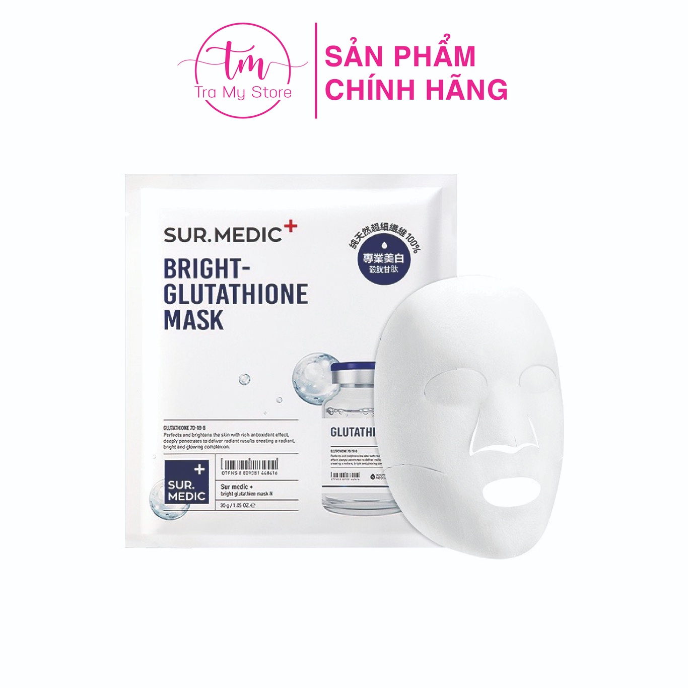 Mặt Nạ Dưỡng Trắng Sur.Medic Bright Glutathione Mask Hàn Quốc là sản phẩm hỗ trợ dưỡng trắng chuyên sâu và hàm lượng tinh chất cho hiệu quả dưỡng trắng lâu dài. Chiết xuất từ thành phần thiên nhiên, kết hợp với hàm lượng tinh chất riêng biệt cung cấp dinh dưỡng tối ưu cho da. Đẩy lùi ức chế melanin, giúp dưỡng da mịn màng và luôn căng bóng.