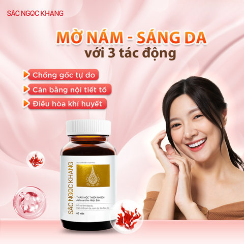 Bạn đã mệt mỏi với những vết nám, sạm da và tàn nhang trên khuôn mặt không? Đừng lo lắng nữa! Viên uống Sắc Ngọc Khang sẽ là "cứu tinh" cho bạn. Với công thức độc quyền chứa Isoflavon, L-cystin và Astaxanthin, sản phẩm giúp đào thải gốc nám sâu, giảm nám bề mặt, và ngăn chặn sự hình thành melanin. Kết quả, bạn sẽ tự tin hơn với làn da mịn màng, mờ nám và tàn nhang.