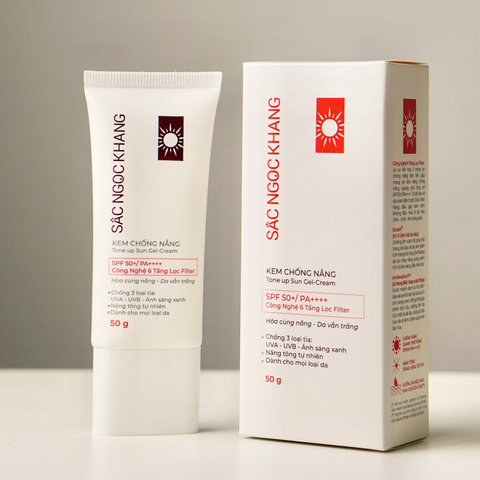 Để bảo vệ da khỏi tác động của tia UV gây hại, hãy tin tưởng vào Kem chống nắng Sắc Ngọc Khang. Với thành phần từ chiết xuất cà chua không màu, hoa anh đào, cây Candeia Brazil, Sodium Hyaluronate, rễ cam thảo, dầu jojoba và vitamin E, sản phẩm không chỉ chống nắng mạnh mẽ với SPF50+ và PA++++, mà còn làm dịu da, ngăn ngừa hình thành nám mới và cải thiện độ ẩm cho da. Kết quả là bạn sẽ sở hữu một làn da trắng sáng, đều màu, mềm mại và ẩm mịn.