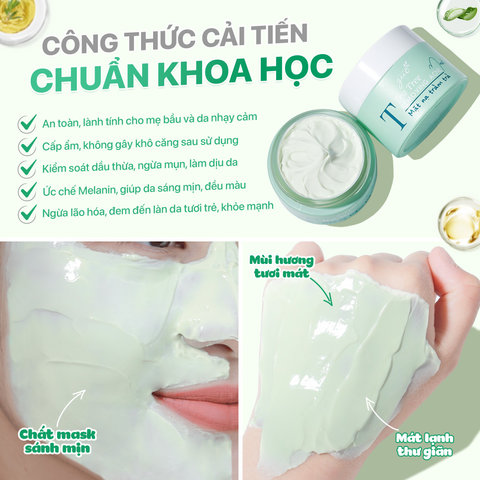 Với công thức mới được cải tiến, mặt nạ đất sét tăng cường tràm trà + bổ sung BHA, giúp loại bỏ đi lớp dầu thừa, bụi bẩn, tế bào chết gây bít tắc tận sâu trong lỗ chân lông mà không gây khô, căng da. Sản phẩm hỗ trợ đào thải mụn ẩn nhẹ nhàng, gom khô cồi mụn nhanh chóng, ngừa các loại mụn. Đặc biệt, mặt nạ đất sét tràm trà được bổ sung thêm các thành phần giúp ngừa kh.u.ẩn, làm dịu, phục hồi nốt mụn và vùng da xung quanh. Sản phẩm phù hợp với mọi loại da, đặc biệt là da dầu mụn, da vốn dễ bít tắc nang lông và dịu nhẹ cho da nhạy cảm
