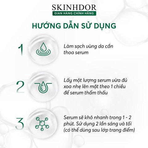 - Sau khi làm sạch da, dùng serum sau toner, cho 1 đến 2 giọt trực tiếp lên mặt. Mát-xa đều lên mặt ở những vùng có nếp nhăn.