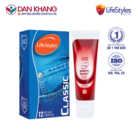 - Tên sản phẩm: Combo Bao Cao Su LifeStyles Classic Ôm Sát Cao Cấp Hộp (12 Bao/Hộp) + Gel Bôi Trơn LifeStyles Warm Lovin Tăng Cảm Giác Ấm Nóng