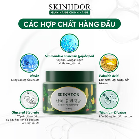 - Tên sản phẩm: Tẩy Trang, Kem Tẩy Trang Rau Củ Sạch Sâu, Dưỡng Ẩm Massage, Hỗ Trợ Làm Sáng Da Vegetables Detox SKINHDOR Cream 120g