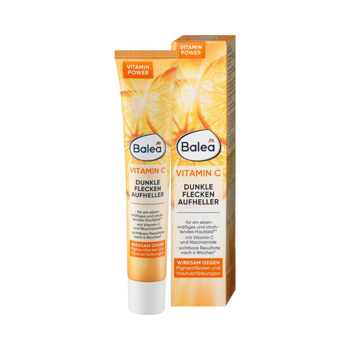 Balea Vitamin C Dark Spots Lightener giúp một làn da đều màu hơn. Sự kết hợp của các hoạt chất với VITAMIN C và nia-cinamide có giúp làm sáng. Nia-cinamides làm giảm sắc tố của da. Các đốm đồi mồi xuất hiện ít nhìn thấy hơn và nhỏ hơn. Các đốm sắc tố và sự đổi màu da được giảm rõ rệt hơn nhiều. Vitamin E và C có giúp chống oxy hóa và bảo vệ da khỏi các gốc tự do và ảnh hưởng tiêu cực của môi trường. Nước da sẽ trở nên trông đều màu và rạng rỡ hơn.