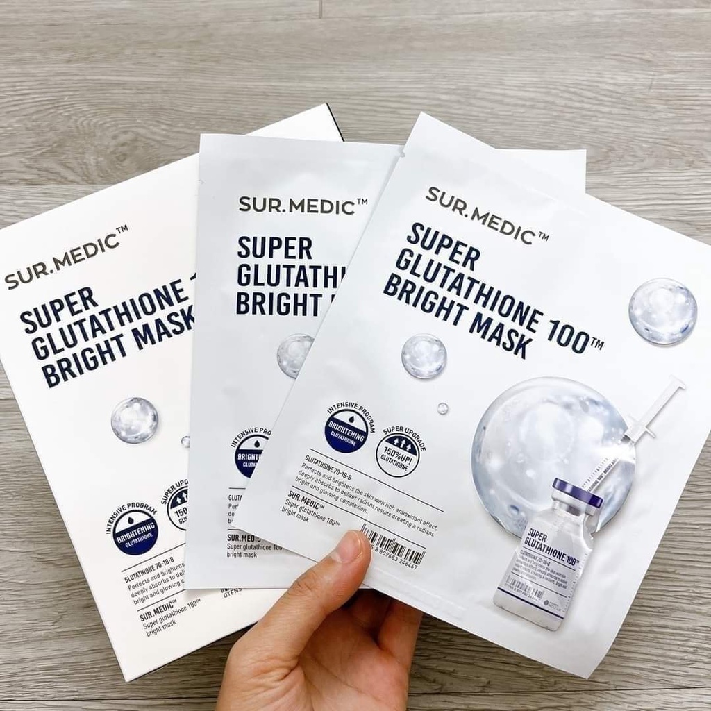 Sur.Medic Bright Glutathione Mask là dòng mặt nạ tinh chất Glutathione dưỡng sáng da từ thương hiệu mỹ phẩm Sur.Medic+ của Hàn Quốc, nay chính thức ra mắt phiên bản nâng cấp hoàn toàn mới - Super Glutathione 100 Bright Mask với các ưu điểm nổi bật như sau: