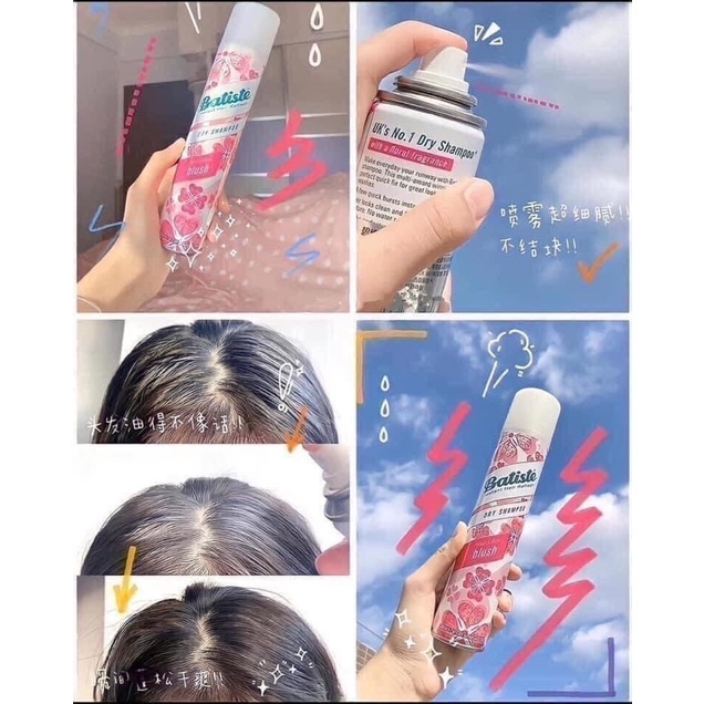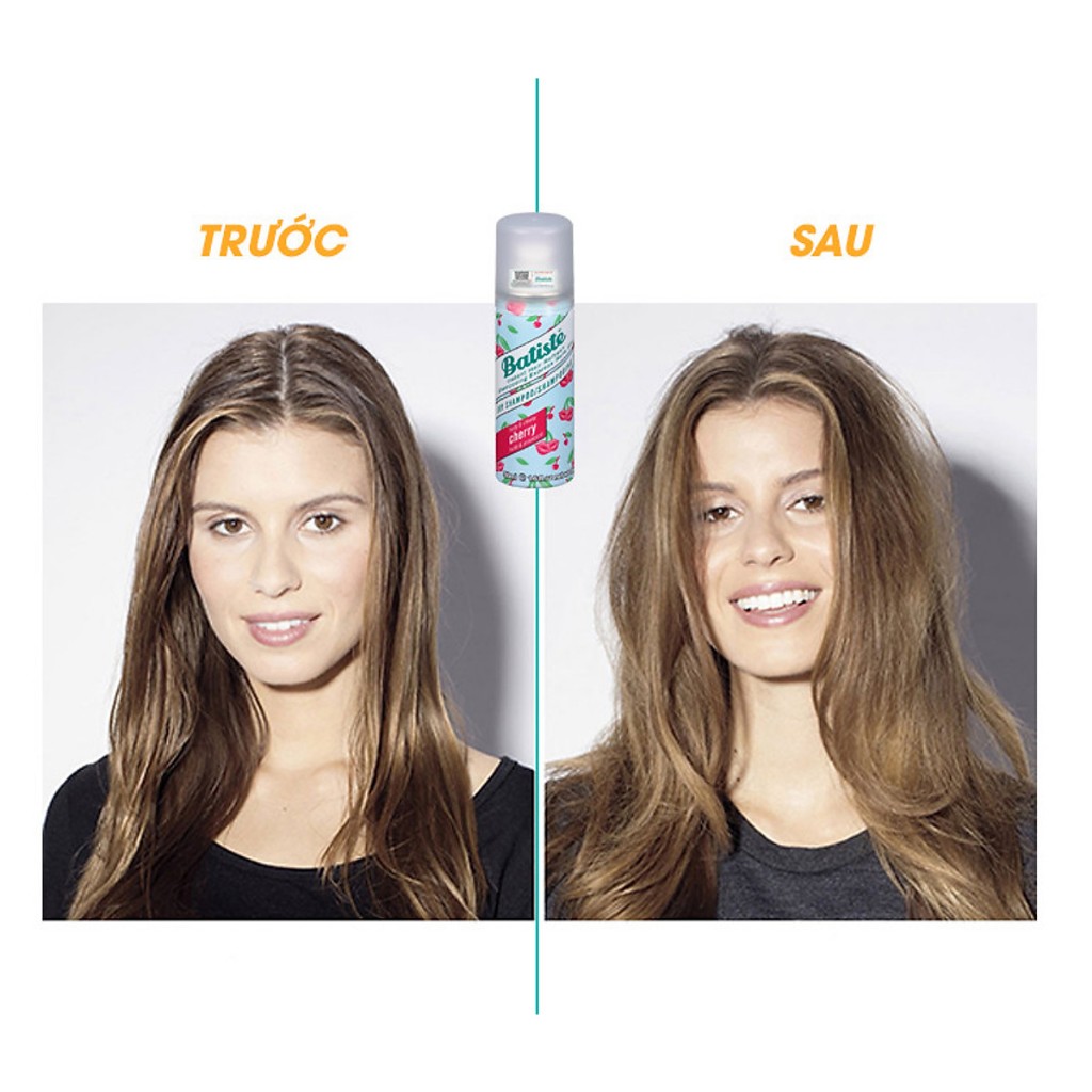 Batiste Dry Shampoo là dòng sản phẩm dầu gội khô nổi tiếng của thương hiệu Batiste xuất xứ tại Anh Quốc. Công thức độc đáo không cần nước giúp nhanh chóng hấp thụ dầu thừa trên da đầu và tóc, làm giảm bết dính, trả lại cho bạn mái tóc tơi mịn, đồng thời hỗ trợ khử mùi hôi và lưu lại hương thơm vô cùng dễ chịu.