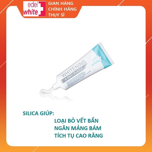 Kem đánh trắng răng edelwhite giúp ngăn ngừa mảng bám và loại bỏ các vết bẩn bám trên răng, giúp duy trì độ trắng sáng của răng. Với công thức chống mảng bám và làm trắng độc đáo có chứa Tetrapotassium polyphosphate làm sạch nhẹ nhàng, Silica giúp loại bỏ vết bẩn, ức chế sự tích tụ mảng bám và cao răng. Bên cạnh đó, chất Fluoride 1450ppm giúp răng chắc khỏe và ngăn ngừa sâu răng vượt trội; không chứa SLS chất tạo bọt do vậy giúp loại bỏ các chứng nhiệt miệng, lở loét miệng. Ngoài ra chỉ số RDA 80 trong kem đánh trắng răng edelwhite Whitening Anti-Plaque cũng thể hiện sản phẩm rất an toàn vì có sử dụng chất mài mòn hợp lý, phù hợp cho răng thường và răng khỏe mạnh, không gây bào mòn, tổn thương men răng, an toàn khi sử dụng.