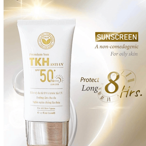 Premium Sun TKH Anti UV là dòng kem chống nắng thế hệ mới với nhiều ưu điểm vượt trội của thương hiệu Trần Kim Huyền. Đây là dòng vừa chống nắng hiệu quả vừa dưỡng trắng da chỉ sau 28 ngày sử dụng. Với chiết xuất từ SAKADIKIUM là chiết xuất từ củ của cây Hedychium coronarium – gừng trắng, trong dung mai Glycerin/ Nước. Dưỡng chất này giúp bảo vệ da khỏi tác hại từ môi trường (Ánh sáng xanh, UVA, và các hợp chất hữu cơ oxy hóa không hoàn toàn BaP). Thông qua cơ chế điều hòa quá trình tự thực bào, bảo vệ ty thể, kháng oxy hóa, điều hòa tác nhân gây viêm.