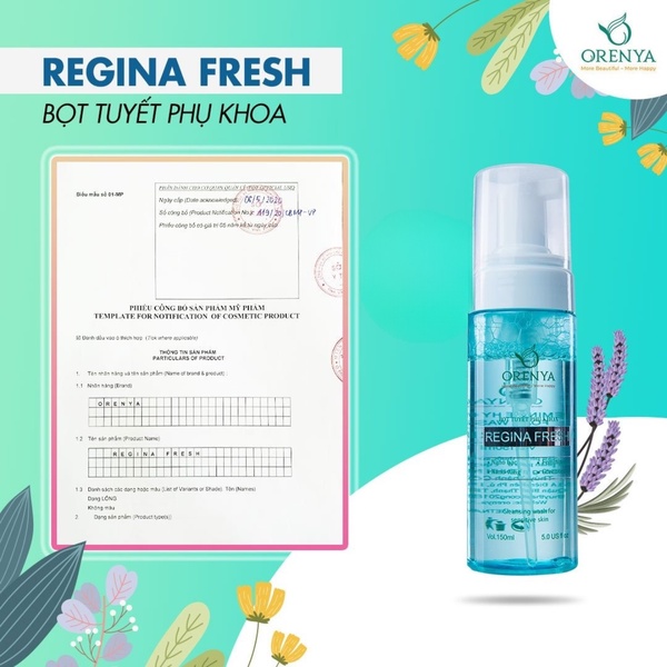 - Tên sản phẩm: Dung Dịch Vệ Sinh Vùng Kín Regina Fresh Orenya - Orenya