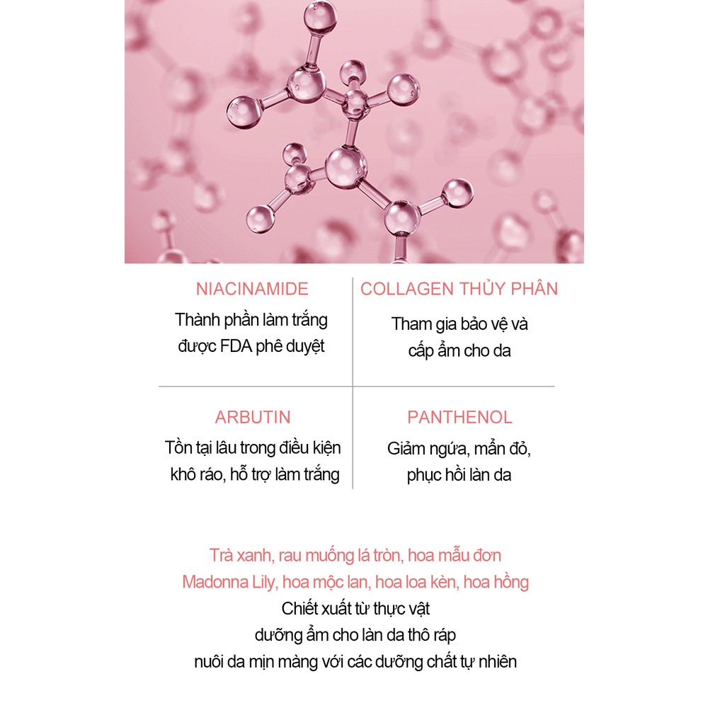 Bên cạnh đó, em này còn bổ sung Niacinamide và Arbutin giúp tăng cường khả năng làm sáng da hiệu quả.