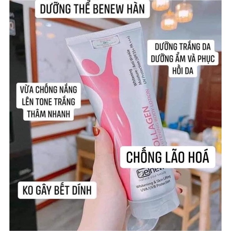 Bộ sản phầm gồm: + Kem dưỡng trắng body benew collagen ngày 200ml