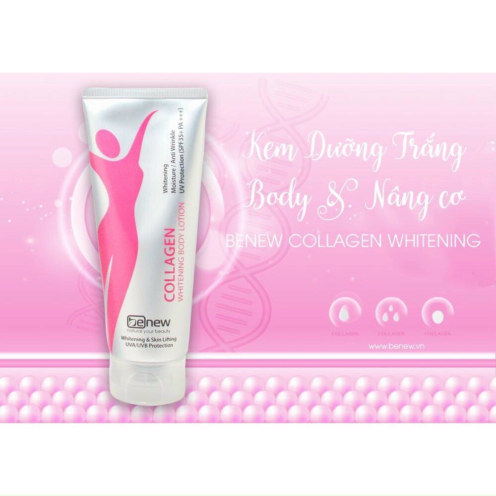 Kem Dưỡng Thể Trắng Da Toàn Thân Benew Collagen có thành phần Collagen tươi giúp tái tạo tế bào da mới, phục hồi da hư tổn, nâng cơ da, làm mờ nếp nhăn, bổ sung độ ẩm cho da. Sản phẩm dùng cho toàn thân, thích hợp với mọi loại da.