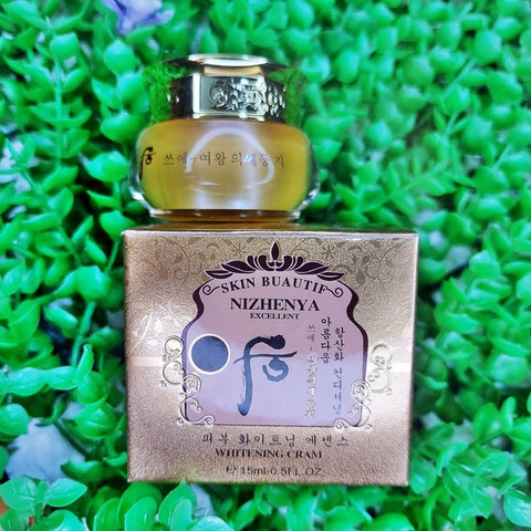 + NIZHENYA EXCELLENT LÀ KEM CHUYÊN VỀ NÁM , DƯỠNG TRẮNG DA VÀ TÁI TẠO DA TƯƠI MỚI. Sản phẩm này có chứa các loại protein cao và các dưỡng chất được chiết xuất từ thảo mộc cùng với vitamin A, D, E, nuôi dưỡng và tái tạo da. Đồng thời tạo ra các sợi huyết thanh tác động sâu đến các loại tế bào gây sạm, nám giúp bài tiết các sắc tố đen nhanh hơn. Giúp da bạn trắng sáng và đều màu hơn.