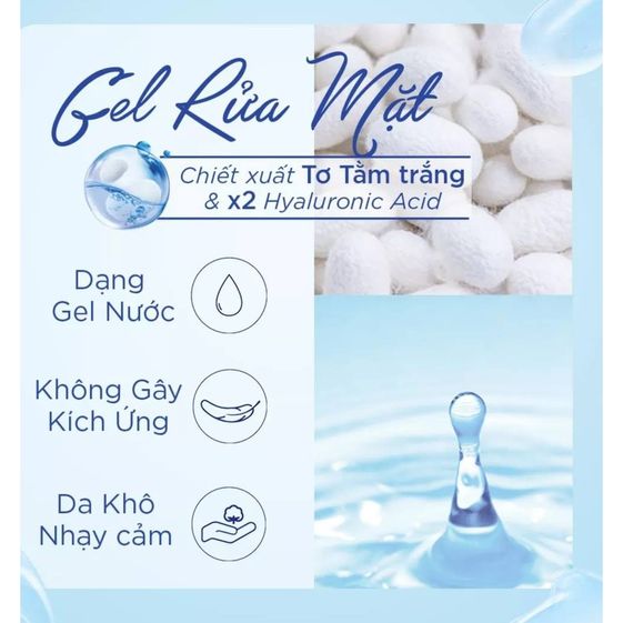 - Thành phần: Dầu cám gạo, tinh chất tơ tằm, Hyaluronic acid