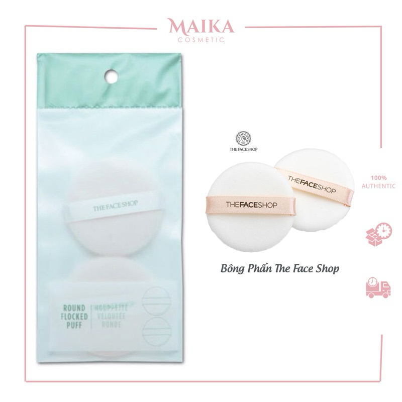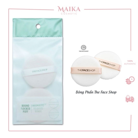 – Bông phấn Thefaceshop round flocked puff: bông trang điểm thiết kế hình tròn, sử dụng với các loại phấn dạng bột và nén, giúp lớp phấn tán đều và mỏng, mịn.