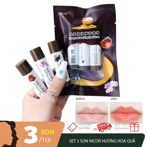 Thông tin sản phẩm: SET 3 SON DƯỠNG CÓ MÀU NICOR DƯỠNG ẨM CĂNG MỌNG MỀM MÔI VỊ HOA QUẢ - GDN