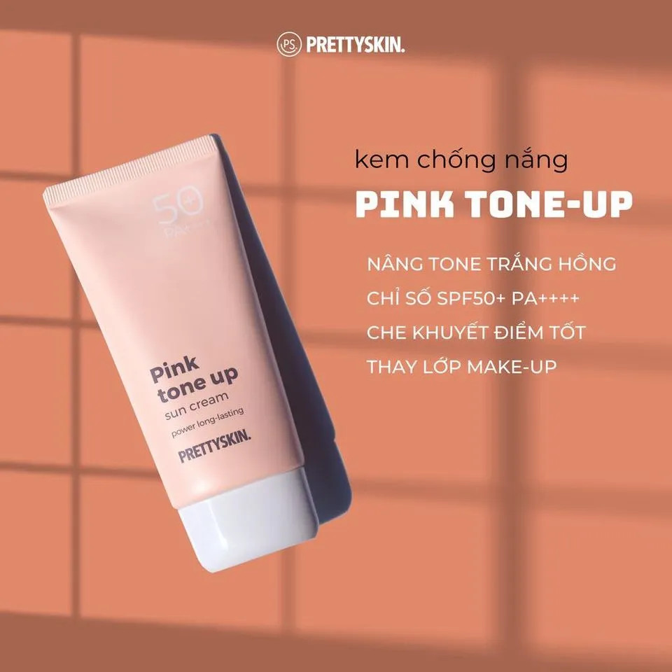 Kem Chống Nắng Nâng Tone Trắng Hồng Pretty Skin Pink Tone-Up Sun Cream SPF 50+ PA++++ 70ml: Chống nắng, nâng tone trắng hồng rạng rỡ. Che khuyết điểm tốt có thể sử dụng thay cho kem nền. Khi sử dụng không bị bết rít và không gây bí da. Thành phần: - Zinc Oxide và Titanium Dioxide: bộ đôi chống nắng vật lý lành tính, giúp tăng khả năng chống nắng, bảo vệ da khỏi tia UV, giảm kích ứng cho da trước nhiệt độ cao -