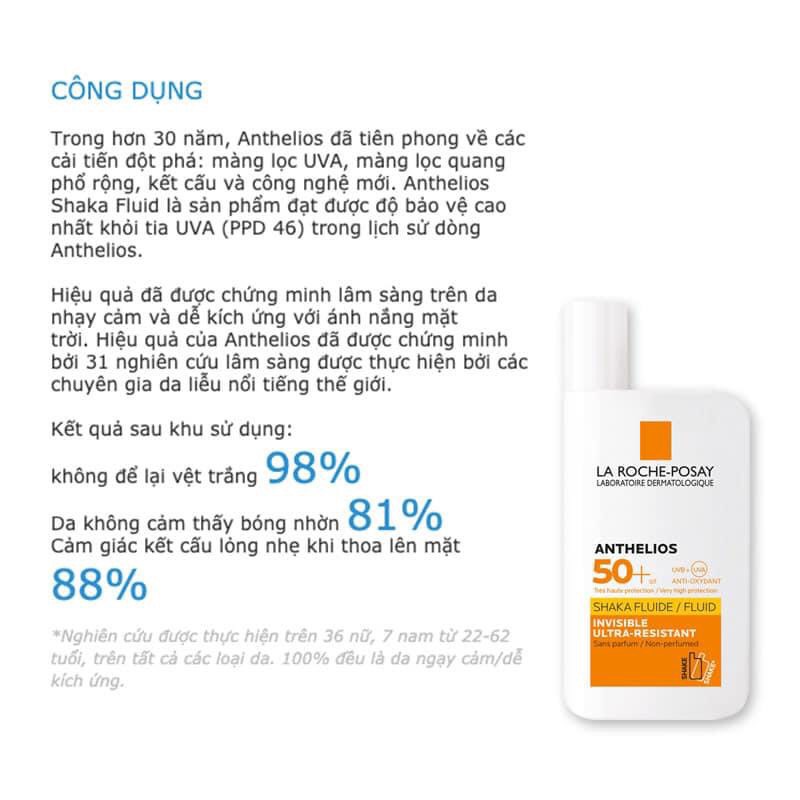 - Sản phẩm chống nắng đến từ thương hiệu dược mỹ phẩm La Roche-Posay của Pháp, với khả năng chống nắng đứng đầu trong dòng chống nắng Anthelios, giúp bảo vệ da trước tia UVA và UVB gây hại đồng thời ngăn ngừa tổn thương da do tia hồng ngoại và ô nhiễm môi trường.