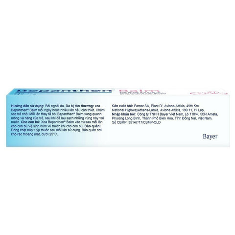 * Chăm sóc trẻ nhỏ: Sau mỗi lần tắm, thoa Bepanthen® Balm xung quanh mông và háng của trẻ, sau khi đã lau sạch những vùng này với nước.