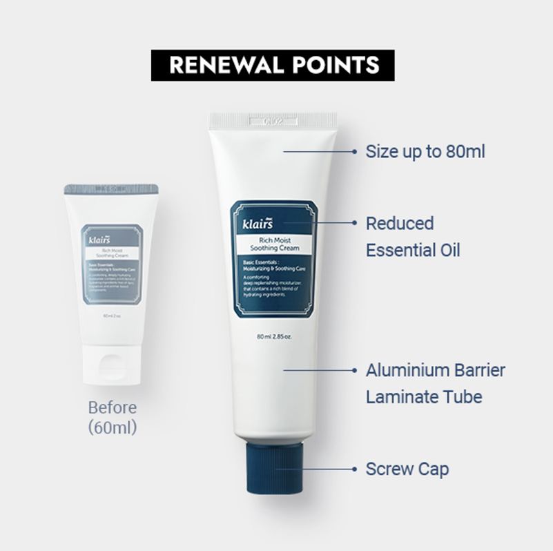 - Kem Dưỡng Ẩm Chuyên Sâu Klairs Rich Moist Soothing Cream hiện nay đã có mặt tại Thế Giới Skinfood với thành phần "sáng giá" Beta-Glucan có nguồn gốc từ thành tế bào ngũ cốc và nấm men có công dụng làm dịu da, giảm kích ứng, tái tạo tế bào giúp da sản sinh Collagen đẩy lùi nếp nhăn cũng như ngăn chặn quá trình lão hóa. Đặc biệt, Beta-Glucan có khả năng ngậm nước nhiều hơn 20% so với Hyaluronic Acid giúp da khóa ẩm và "ngậm nước" vượt trội mang lại làn da ẩm mịn dài lâu.
