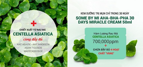- Kem Some By Mi aha bha pha 30 Days Miracle Cream với thành phần chứa 100% thảo dược tự nhiên giúp loại bỏ mọi loại mụn dễ dàng và tận sâu chân gốc, xóa mờ vết thâm mụn, dưỡng da trắng sáng và mềm mịn.