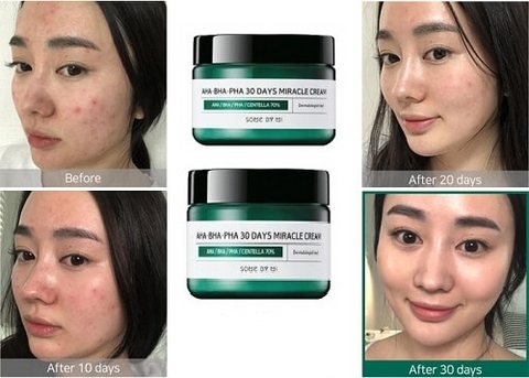 - Kem dưỡng trị mụn Some By Mi giúp bạn sở hữu làn da sạch mụn chỉ sau khoảng 30 ngày sử dụng sản phẩm. (*)