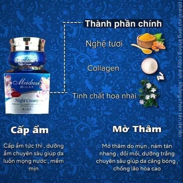 🌙 𝑲𝒆𝒎 𝑴𝒆𝒊𝒅𝒖𝒛𝒊 𝒃𝒂𝒏 đ𝒆̂𝒎 : chuyên cấp nước dưỡng ẩm chuyên sâu cho da luôn căng bóng , chống lão hoá và căng mịn da, tái tạo & phục hồi da khi ngủ.