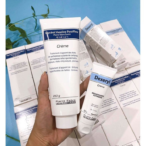 - Kem Glycerol Vaseline Parafin từ Pierre Fabre Santé là sản phẩm giúp khắc phục tình trạng khô da đi kèm với một số vấn đề về da như viêm da dị ứng, chàm, vẩy nến. Kem cũng giúp cải thiện tốt các vết bỏng nông ở mức độ nhỏ.