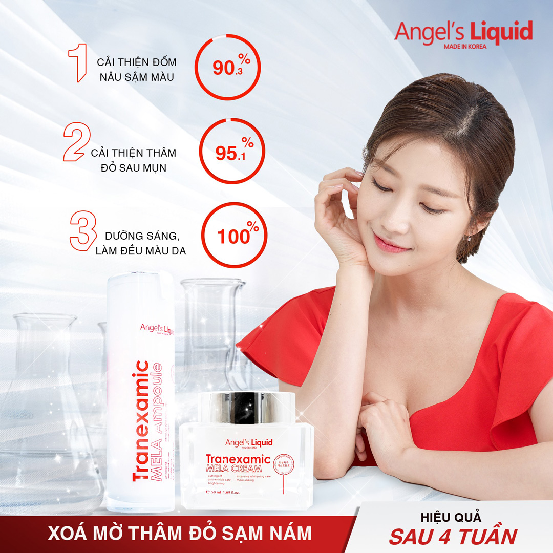 Kem Dưỡng Angel's Liquid Làm Mờ Nám Chuyên Sâu 50ml là sản phẩm serum đến từ thương hiệu mỹ phẩm Angel’s Liquid của Hàn Quốc, với thành phần T.X.A, Niacinamide và các chiết xuất cam thảo có khả năng làm mờ thâm nám, loại bỏ các đốm nâu, dưỡng sáng da và mờ các vết thâm mụn đồng thời hỗ trợ kháng viêm, làm dịu và ngăn ngừa kích ứng.