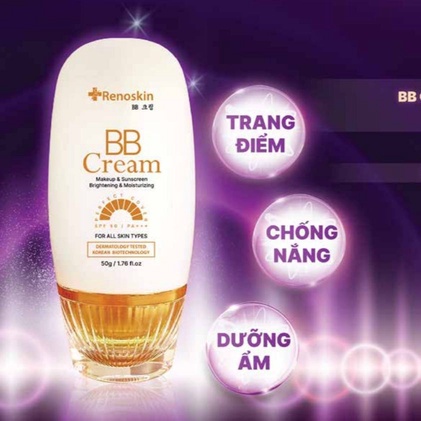 Kem trang điểm và chống nắng BB Cream Renoskin. Là kem Trang điểm Hàn Quốc đa chức năng chống nắng với SPF 50 PA++++ và giúp làn da trắng sáng cũng như dưỡng ẩm.