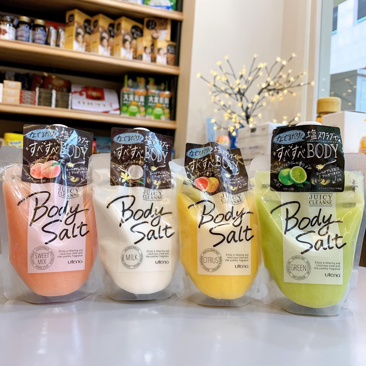 Muối tắm Body Salt của Nhật hiện đang là dòng sản phẩm đang làm mưa làm gió trên thị trường Nhật Bản, với những công dụng tuyệt vời trong quá trình làm sạch lỗ chân lông và loại bỏ bụi bẩn trên cơ thể đem đến cho khách hàng một kết quả bất ngờ sau một thời gian sử dụng. Thay vì sử dụng những loại kem tẩy tế bào chết cho body của mình thì việc sử dụng muối tắm Body Salt của Nhật sẽ an toàn và đảm bảo hơn. Được sản xuất bởi thương hiệu Utena trên dây chuyền công nghệ đại đem đến những mùi thơm dễ chịu từ rau – quả cho người dùng cảm giác nhẹ nhàng, thư giãn khi sử dụng. Đồng thời giúp loại bỏ lớp tế bào chết trên cơ thể một cách nhanh chóng, cung cấp độ ẩm cần thiết cho da giúp da luôn mềm mịn và đẹp một cách tự nhiên nhất.