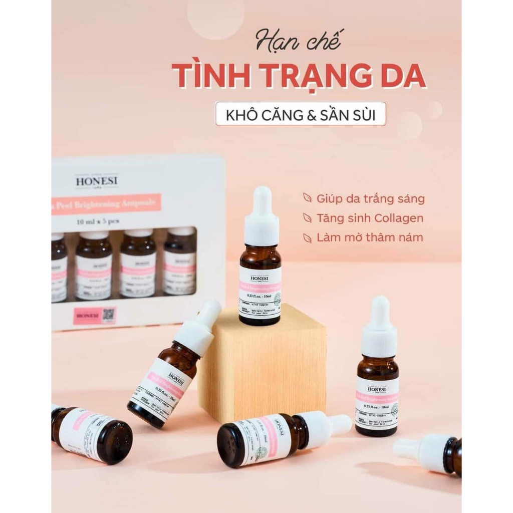 Serum Honesi với tên gọi đầy đủ là tinh chất tế bào gốc Honesi Vita Peel Brightening Ampoule. Hãy cùng tìm hiểu chi tiết về thành phần và công dụng của em serum Honesi trong phần dưới đây nhé.