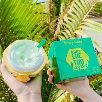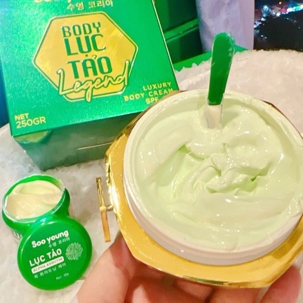 Kem body lục tảo Legend-Soo young thành phần chứ: water, glycerin, glutathione, ascorbic acid, niacinamide, kojic, acid. titanium dioxide, carbomer, hyaluronic acid, alpha-arbutin, tocopheryl, collagen.........