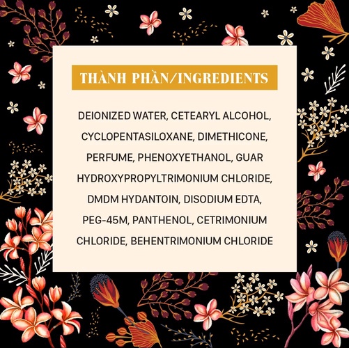 - Các thành phần chiết xuất thiên nhiên dưới dạng kích thước nhỏ, có khả năng thẩm thấu trực tiếp vào tóc để nuôi dưỡng và phục hồi lại mái tóc bóng mượt, khỏe mạnh.
