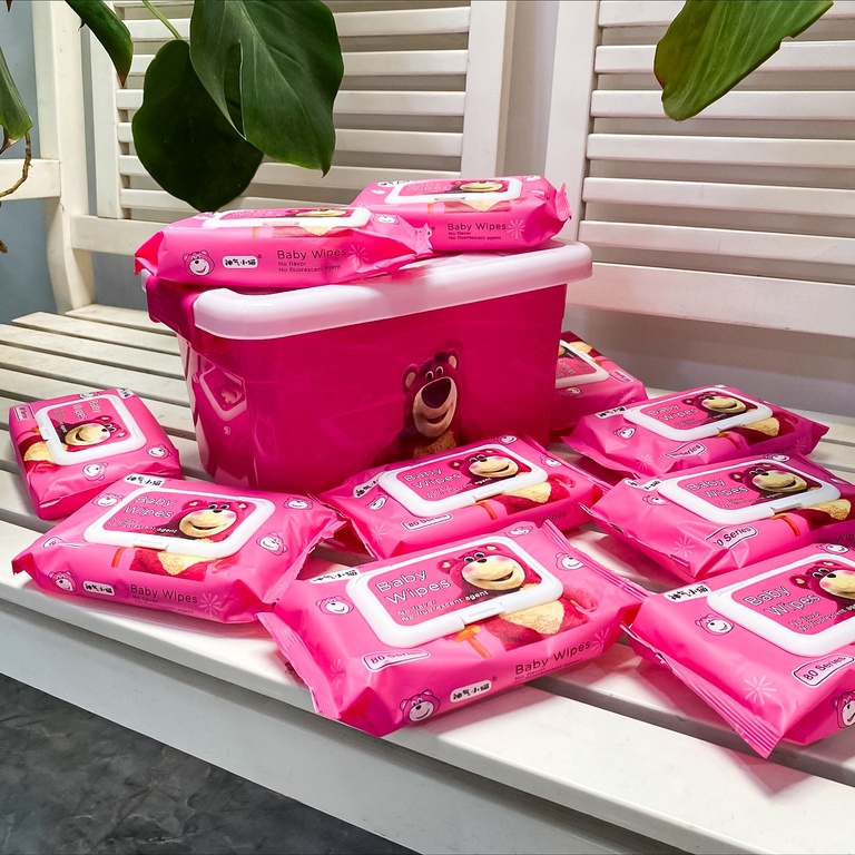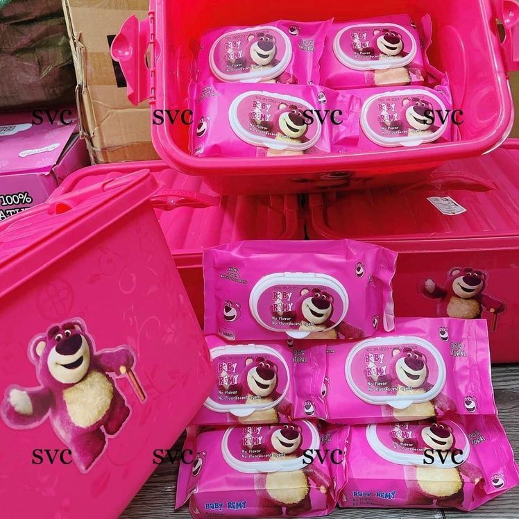 KHĂN ƯỚT GẤU DÂU KÈM THÙNG NHỰA [THÙNG 10 GÓI] - MESU STORE